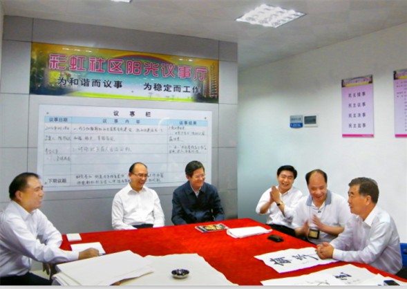 广东国晖律师事务所夏学义律师受邀参加了彩虹社区设立“阳光议事厅”,以社区党组织为核心,居委会为主体,广泛吸收辖区单位和居民代表参与,对社区重点、难点、热点问题进行讨论并形成决议的座谈会。汪洋鼓励社区继续探索行之有效的自治形式并将其制度化,积极反映群众合理合法诉求,重点解决群众反映强烈的突出问题,调动居民参与社区公共事务的积极性,让群众生活得更幸福,不断提升基层党组织的影响力、凝聚力、号召力。(2012年4月20日)